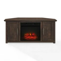 - The Room & Joy Irving Corner Fireplace TV Stand fits right into any corner of your living area to create the perfect ambiance