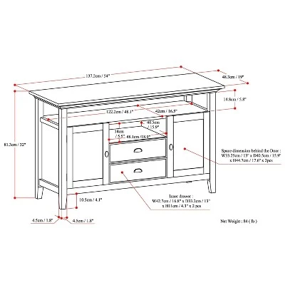 - Dimensions (Overall): 32 Inches (H) x 54 Inches (W) x 19 Inches (D)