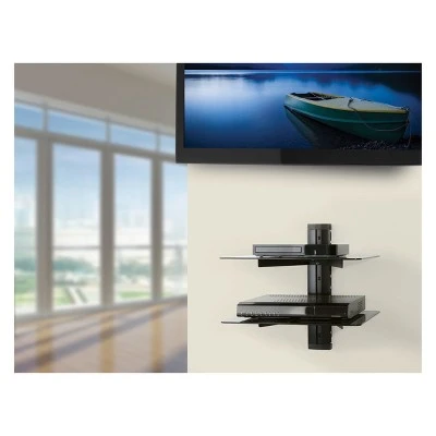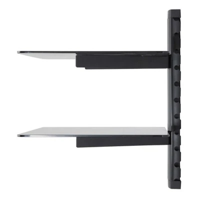 The AS200-A is an A/V wall shelf unit with two shelves. It’s great for a cable box, satellite box, DVR, Blu Ray, DVD, video game consoles, routers, speakers, Sonos devices, other audio devices, or even your Star Wars action figures (for example). The AS200-A shelving unit not only saves valuable space, but it also safely secures your AV equipment to the wall. Installation is quick and easy. The height-adjustable black tempered glass shelves measure: 17.7 inch (width) x 14 inch (depth), and supports up to 22lbs each.