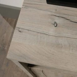 Farmhouse is in—the rustic and unique design of this entertainment credenza from the Bridge Acreâ„¢ collection will never go out of style. This credenza accommodates up to a 65″ TV weighing 70 lbs. or less, making it the perfect spot to cozy up around for all-day movie marathons with your family or endless hours of video games with your friends. Display the best, forget the rest – just slide one of the two country-inspired barn doors over for additional storage! This credenza TV stand features three adjustable shelves, so you can customize your credenza to fit your specific storage and display needs. Find room for anything from video and gaming equipment to knick-knacks and home décor items. You’ll have space for it all! This barn door TV stand also includes cord management through the enclosed back panel so you can keep all your wires neat and out of sight. Finished in Orchard Oakâ„¢ and detailed with beautiful hardware, this handsome farmhouse TV stand will be the highlight of your home.