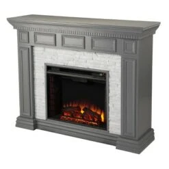 Accent your living space with the Aiden Lane Brothye Faux Stone Electric Fireplace. A decorative mantel offers display space for a vase of flowers or family photos, while an elegant faux stone surround adds texture and contrast. Designed for year-round enjoyment, this electric fireplace features lifelike flames and embers that work with or without heat. Give your dining room or den a classic, cozy feel when you bring home this freestanding electric fireplace.