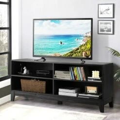 This is our new TV stand console, which is perfect to outfit your living room. It features a vintage brown appearance and x-shaped wooden structure on both sides, bringing modern style to your living room and blending well with any home decor. Made of premium wood, this table is sturdy and durable, providing a lifelong reliable use. The 2 cupboards and a display shelves provide large space for placing TV remotes, books, magazines, photo albums or other items. Specification: Color of TV Stand:Brown. Material of TV Stand:wood. Overall dimension of TV Stand:44”Lx 16”W x24”H. Cabinet dimension:40”L x 13.5”D x 7.5”H. Net weight of TV Stand:about 50 Lbs. Weight capacity of TV Stand:110Lbs. Package includes:1 x TV stand.