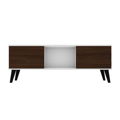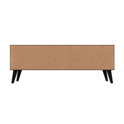 Entertaining has never been easier or looked this good, with the Doyers TV stand, an edgy and modern piece that’s simple in design, yet completely functional and seamless in any space. With four concealed shelves perfect for tucking away all media accessories, electronics, books, and beyond, and center open space to showcase a DVD player, coffee table books, and any favorite items to keep on display. Set decorative accents, framed family photos, or planters on its base to tie the space together, and invite friends and family over for a great movie night in.