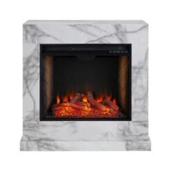 Bring home subtle sophistication with the Aiden Lane Dridun Faux Marble Fireplace w/ Alexa Firebox. White and gray faux marble veining accentuates a clean, simple silhouette, and the neutral color palette blends with your existing home décor. Voice-enabled Alexa technology allows for seamless control from anywhere in the room, while realistic embers, flickering LED flames, and glowing faux fire logs add ambiance year-round, with or without heat. For a stylish fireplace look without the hassle of logs and soot, add this smart electric fireplace to your living room, dining room, or open concept living space.