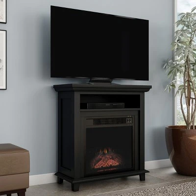 Enjoy a warm, cozy evening watching a movie by the fire with this Hastings Home Electric Fireplace TV Stand. The attractive faux logs and energy-efficient LED flames provide heat for up to 400 square feet of indoor space. A fixed shelf holds your media player equipment securely, with a hole for convenient and discreet cord management. The console’s slender profile makes it a great furniture piece for even smaller living spaces.
