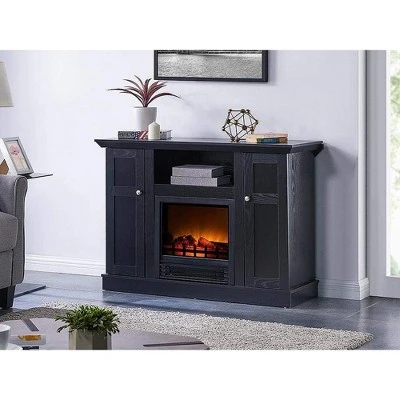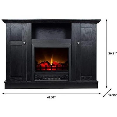 The Barclay Media Fireplace in Black is perfect for any decor. This console is guaranteed to be the focal point of any room with its spacious storage cabinets for all of your media components, electronics, and accessories. The convenient open shelf can hold your cable box, DVD player, or can be decorated with a stack of books. The 18 inch electric firebox has a fan-forced heater that provides supplemental warmth to heat areas up to 400 Sq. Ft. Take the chill out of your room when it’s cold outside or use in flame only mode during warmer months.