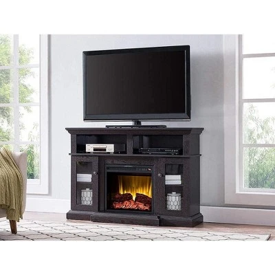 The Drew Media Console in Dark Mahogany finish will add warmth to your home and is the perfect fit for any decor. Store anything and everything in the clear glass cabinets and the upper open shelves. The 18 inch firebox operates with or without heat. The 5-levels of flame and ember bed brightness allow you to create the perfect atmosphere for any situation or time of year. The included multi-function remote control makes it easy to operate all necessary fireplace settings from anywhere in your room. Installation is quick and easy.