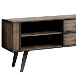 The HOMES: Inside + Out 4 Shelf 70″ TV Stand brings bold modern style to your entertainment space. Distinguished by eye-catching geometric supports and sleek glass cabinets, this TV stand offers the ultimate venue to showcase entertainment devices and stage a family media night. Two glass cabinets provide sophisticated storage while center shelves offer rear-wiring access so setup is simple and easy. Craft a sleek modern entertainment space with the HOMES: Inside + Out 4 Shelf TV Stand.