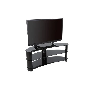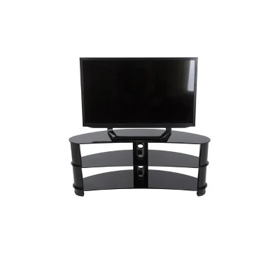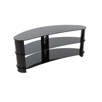 Jellybean TV stands offer a unique curvy shape that optimizes them for placement in corners or along flat walls. Construction is of aluminum and tempered glass for a robust foundation. Perfect for holding not only a TV, but also AV components such as Digital Receivers, DVRs, Blu-ray, Soundbars, or Gaming Consoles. Cables can be routed via the built-in cable management with entry and exit points along the length of the center column so that all power and connectivity leads can easily reach the equipment in a neat and organized fashion. For TV Sizes: 32, 37, 39, 40, 42, 43, 46, 47, 50, 55, 58, 60. For TVs with wide feet, please measure the width of the feet to ensure it will fit on the stand.