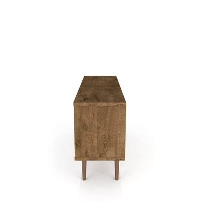 The Liberty 53.14 Mid-Century Modern TV Stand is the perfect blend of quality craftsmanship, brilliant design, and purposeful functionality. Featuring a large open compartment, one hidden cubby, and three center shelves to create the ultimate entertainment center perfect for stashing DVDs, board games, electronics, and media accessories. Free standing and easy to maneuver, this piece will mix well with any decor and its artful grooves will create a statement in any space.