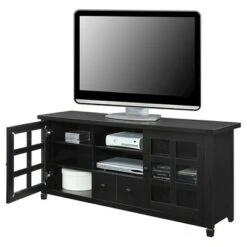 The Newport Park Lane 1 Drawer 60 inch TV Stand with Storage Cabinets and Shelves, by Breighton Home will bring life to any living or entertainment room. Boasting two enclosed panel window cabinets and cable management holes, to accommodate any of your media needs from cable to gaming. Also featuring a drawer for concealed storage you can store away unsightly accessories. Using hollow core construction this TV stand is built to last. Also available in multiple finishes this piece will easily complement any decor. Look for other items from the Newport Collection sold separately.