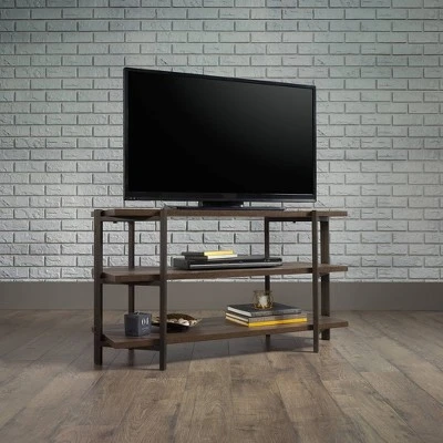 A simple touch of rustic-inspired style can completely transform the look of your home. Update any room with the charming design and good looks of this console from the North Avenue collection. This oak console table accommodates up to a 42″ TV, making it the perfect spot to binge watch your favorite shows and movies or play video games with your friends. This industrial TV console features a sturdy 1″ thick top and two shelves. The spacious top surface can also be used to display home décor items like your collection of knick-knacks, decorative plants, and photos of your family and friends. The lower two shelves provide you with ample storage and display space for anything from movies and books to additional home décor. This industrial console table is finished on all sides for versatile placement throughout your home. Its durable metal frame adds modern style and ensures it will last for years to come. Finished in Smoked Oak, this charming console is just what your home is missing.