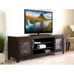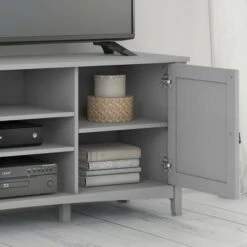 Modern Contemporary Simple Wood Storage Console TV Stand for TVs up to 65″ – Saracina Home Gray