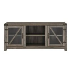 Clarabelle Farmhouse Glass Barn Door TV Stand for TVs up to 65″ – Saracina Home Stone Gray
