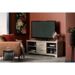 Exhibit Corner TV Stand for TVs up to 42″ – South Shore Seaside Pine