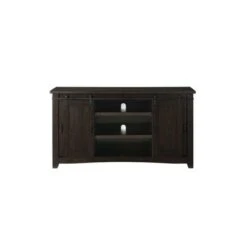 The Santa Fe wood TV Stand is a gorgeous rustic style TV Stand. Constructed of solid pine and pine veneers in an Antique Black and Aged Distressed Pine finish that offers just the right amount of distressing that can blend easily with other rustic, distressed, warehouse, farmhouse, or loft looks. Two sliding barn style doors that slide side to side on a black metal track. The two side doors feature a metal mesh style look that adds to the rustic and distressed look. Four (4) total interior shelves are removable and adjustable providing versatile storage options for audio, video, gaming components. Cable management cutouts are conveniently provided for the main cabinet and outer cabinets. Ideal for most 65″ flat panel TVs and up to 70″. Anti-tip kit added for safety.Features : Antique Black and Age Distressed Pine Finish; Constructed of solid pine and pine veneersTwo (2) sliding barn style doors that slide side to side on a black metal trackMetal mesh style look on side doors; Custom Finished HardwareAdjustable and Removable Shelves allow for plenty of storage; Cable Management CutoutsIdeal for most 65″ flat panel TVs and up to 70″;Specifications : Product Dimensions : 65″ L x 35″ H x 19″ DAssembly Required : Yes