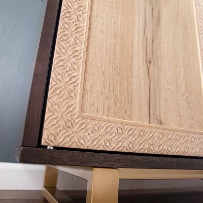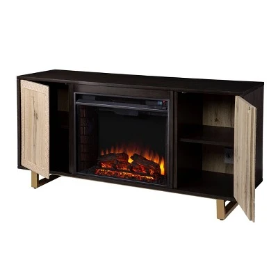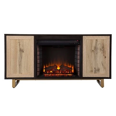Modernize your media storage with the Aiden Lane Shanmol Electric Media Fireplace with Carved Details. A spacious tabletop easily holds your TV or displays collectibles, while carved cabinet doors keep movies and books close at hand. Flickering flames and realistic fire logs bring warm ambiance to your living room or den, working with or without heat for enjoyment in any season. Upgrade your game room or open concept space when you bring home this electric fireplace console.
