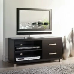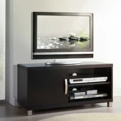 32" TV Stand for TVs up to 40" Saw Cut Off White with Dark Walnut Desktop – Home Essentials