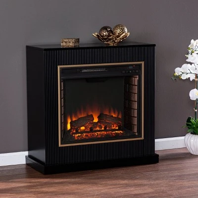 Your space gets a modern upgrade with the Aiden Lane Stallamp Contemporary Electric Fireplace. Gold trim surrounds the electric firebox, adding a sleek, contemporary feel to your living room or dining area. Flickering flames and embers create a realistic fireplace look, while remote-controlled features let you enjoy cozy ambiance all year long, with or without heat. Elevate your home design when you add this contemporary electric fireplace to your space.