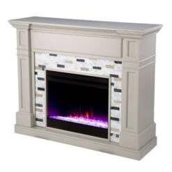 Add a contemporary touch to your classic living space with the Aiden Lane Talsham Color Changing Electric Fireplace with Marble Surround. A spacious mantel holds décor pieces or a vase of flowers, while real, multicolor marble surrounds the electric firebox. Color changing flames reflect against the sleek, acrylic fill, working with or without heat for sophisticated ambiance all year long. Bring home a modern feel when you place this freestanding electric fireplace with color changing flames in your media room or open concept space.