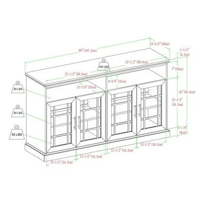 - Dimensions (Overall): 33 Inches (H) x 58 Inches (W) x 15.75 Inches (D)