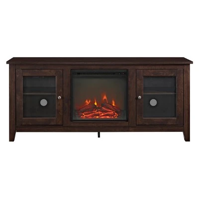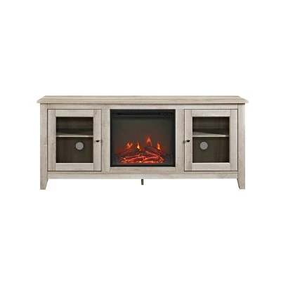 Create a warm, entertaining space in any room of your home with this wood media stand with electric fireplace. Crafted from high-grade MDF with a durable laminate finish to accommodate most flat panel TVs up to 60 inches. Features adjustable shelving behind two side cabinets to fit your components and a cable management system. Installation requires no technician, simply plug into standard household outlet and no venting required.