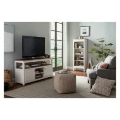 Angelo Modern 2 Door Bookmatch TV Stand for TVs up to 65″ – Saracina Home Ash Brown/white