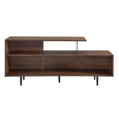Asymmetrical Wood and Glass Console TV Stand for TVs up to 50″ – Saracina Home Slate Gray