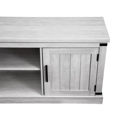 This 58″ wide TV stand features two cabinets with magnetic door catches on two ends, and open adjustable shelf space in the middle. The cable management cutouts will keep your audio and video cables clean and tidy. Its ranch rustic style would perfectly match your current decor. Elevate your living room as well as your TV set with this bald TV stand.