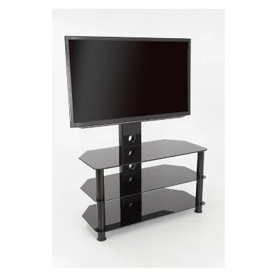 The SDC L family is a simple, attractive, and versatile series of A/V stands that include a TV mount. The high quality, easy to assemble stands blend with virtually any decor. The AVF SDCL900BB-A supports flat panel TVs up to 60″. The black tempered glass shelves and black metal legs modernize any space while the angled corners provide multiple room placement options including into corners to maximize space and viewing angles. Middle and bottom shelves are perfect for AV components such as Digital Receivers, DVRs, Blu-ray, Gaming Consoles, Speakers, Apple TV, Sonos devices, etc. For TV Sizes: 32, 37, 39, 40, 42, 46, 47, 50, 52, 55, 58, 60.