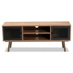 Fulfill the needs of your living room with the versatility of the lovely Unna TV stand. Made in Malaysia, this TV stand is crafted from sturdy wood featuring a natural oak brown finish. Two open shelves provide a convenient display for media devices, while one drawer and four additional shelves behind the doors offer secure storage options. Requiring assembly, the Unna includes a cord management hole on its back panel for quick and easy setup. Sliding doors with slits lend distinct character, making the Unna TV stand a stylish and practical upgrade to the modern living room. Overall Dimensions: 27.30″ Highx 70.87″ Wide x 16.93″ Deep; Drawer: 3.94″ Highx 20.67″ Wide x 12.56″ Deep; Open shelves: 6.89″ Highx 22.84″ Wide x 14.17″ Deep; Top shelves behind doors: 10.26″ High x 22.05″ Wide x 14.17″ Deep; Bottom shelves behind doors: 10.80″ High x 22.05″ Wide x 15.43″ Deep;